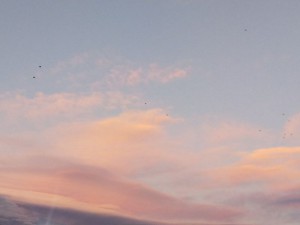 お休みの日に買い物に出かけていたのですが、18時頃なのですが夕焼け空がピンク色![]()