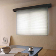 主に和室がメインで使用され、最近は障子を付けずに最初からこのプリーツスクリーンを付けている方も多いです。 ロールスクリーン同様に"ツインスタイル"と言って厚地とレースの組み合わせも流行っています。