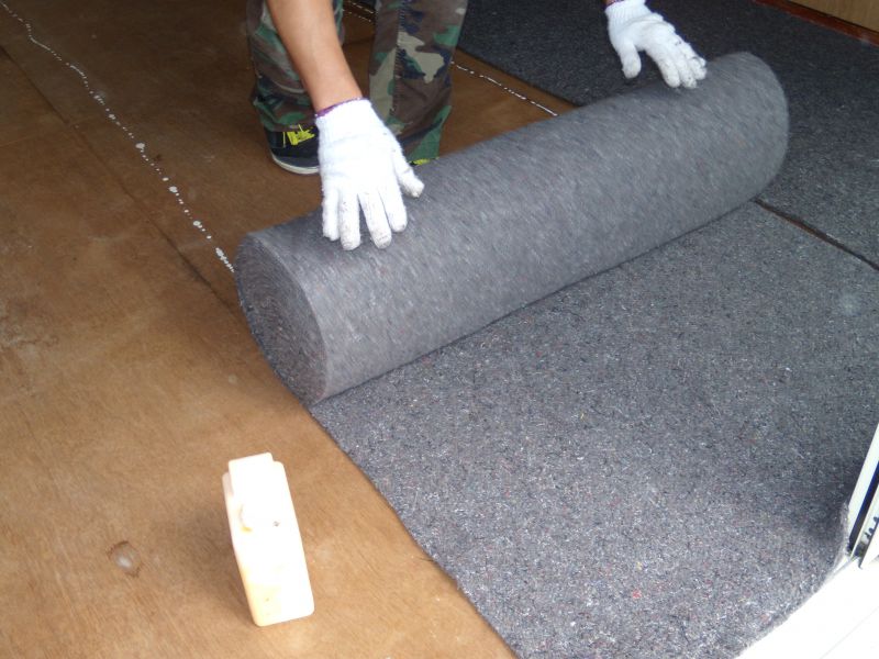専用のテープを熱で溶かして、裏面からカーペットをつなぎます。