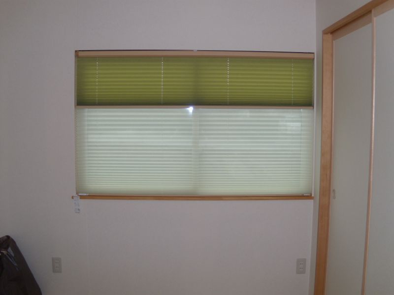 同じ柄で遮光生地もあるのですが、より軽やかで明るいシャンタン生地プリントのものを使用しました。