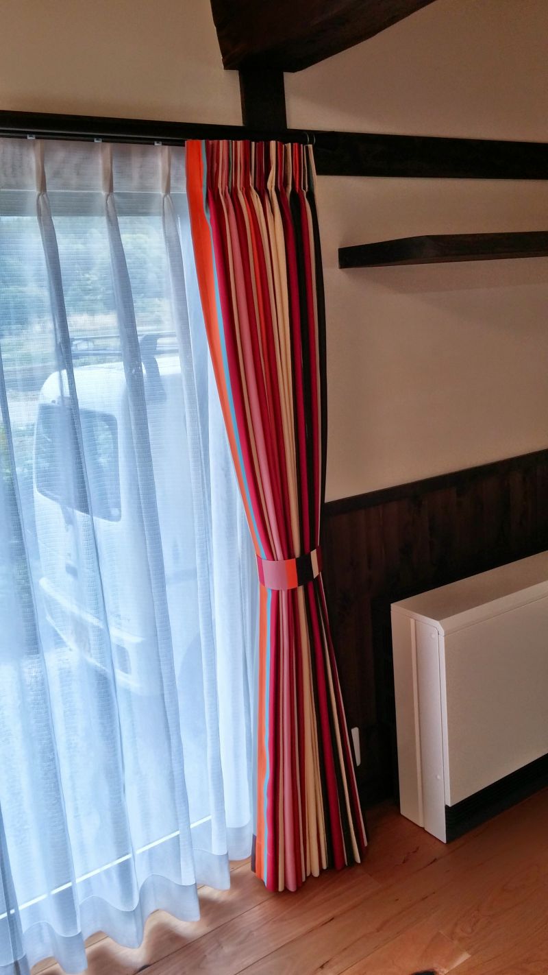 古民家風にシビラのカーテン?とお思いでしょうが、『ベルティカルRED』は、