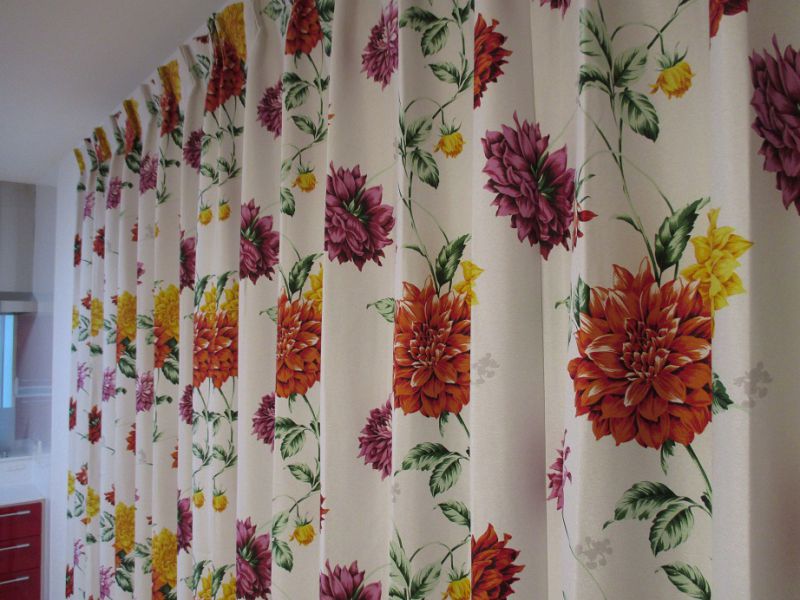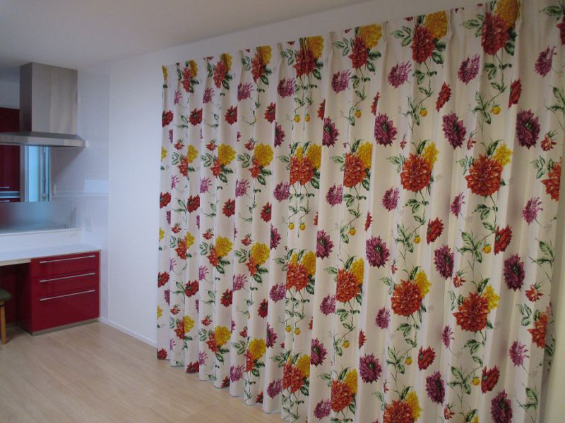 リビングのカーテンにはスミノエMICKEY/Dahliaを選びました。