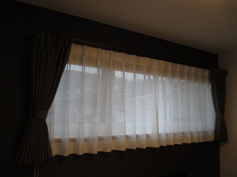 小窓には同じ生地を使ってダブルシェードを取付けました。