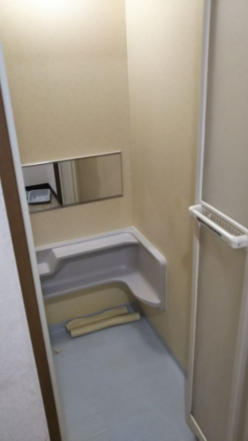普通の室内の壁紙の張替えや塗装の工事は、ゆうあいホームページ施工例でも多く紹介していますが、今回はユニットバスのカベ面のリフォームです。