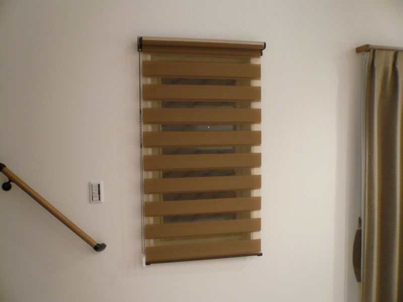 階段下の小窓には、調光操作の出来るロールスクリーンを設置しました。