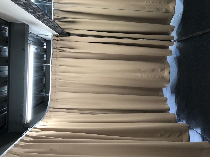宙吊りレールを病院などに付ける場合は、生地の裏面を間仕切り内部にしますが、今回はY様のご希望で、間仕切り内部を表面、間仕切り外側を裏面にしました。
