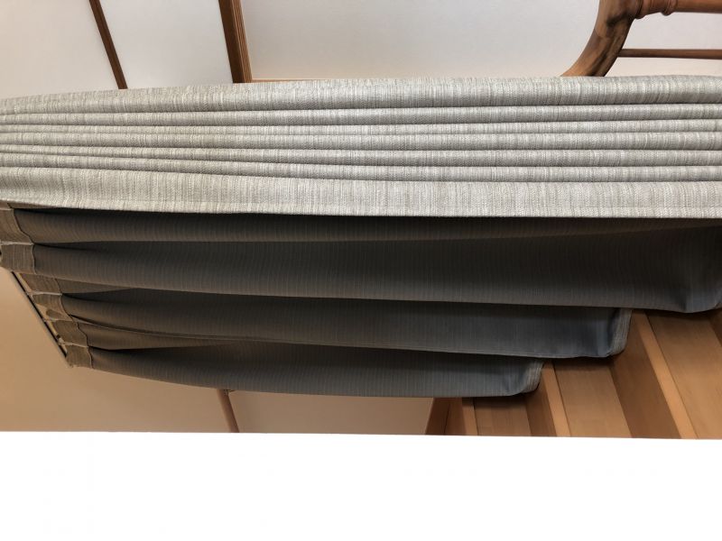階段入口は遮光生地でお作りしたのですが、2F部は非遮光生地でお作りした為、昼間カーテンを閉めていても部屋内が暗くなりません。